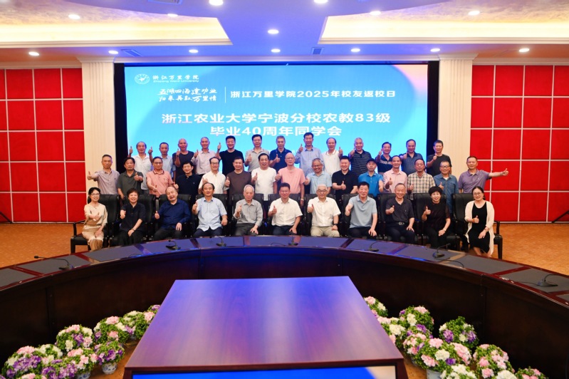 校董会董事、校友会会长应敏,学校党委书记、校友会常务副会长王伟忠,党委副书记、副校长马建荣,原浙江农业大学宁波分校校长张在勋,原浙江农村技术师范专科学院副校长戴德吉,校友会顾问、原浙江农村技术师范专科学院副校长傅宝荣,农机79级校友、宁波市编办原副主任朱斌荣等领导、老师与校友代表齐聚一堂。活动期间,校领导与校友们亲切座谈,详细介绍学校近年来在学科建设、人才培养、社会服务等方面的发展成就,倾听校友们对母校建设的意见建议,鼓励大家继续以“万里人”的担当助力学校高质量发展。