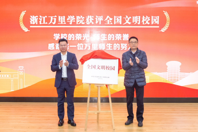 会上,林志华、王伟忠共同为“全国文明校园”揭牌,并对学校的文明创建工作进行了表彰。学校党委宣传部获宁波市第七届全国文明城市创建集体二等功,党委宣传部、学生工作部、安全保卫部、校园建设管理部以及宁波万里后勤服务有限公司获学校全国文明校园创建突出贡献奖。