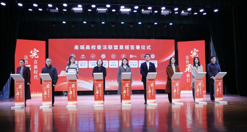 12月6日,由我校马克思主义学院、明日演说家社团报送的“宪法在我心中”朗诵节目在宁波市“宪法宣传月”主题活动主会场上精彩亮相,节目以真挚的情感和昂扬的风貌,展现了万里人的法治素养与时代担当。学校参与甬城高校普法联盟章程签署活动,深化校际协作,共同推动法治校园建设。