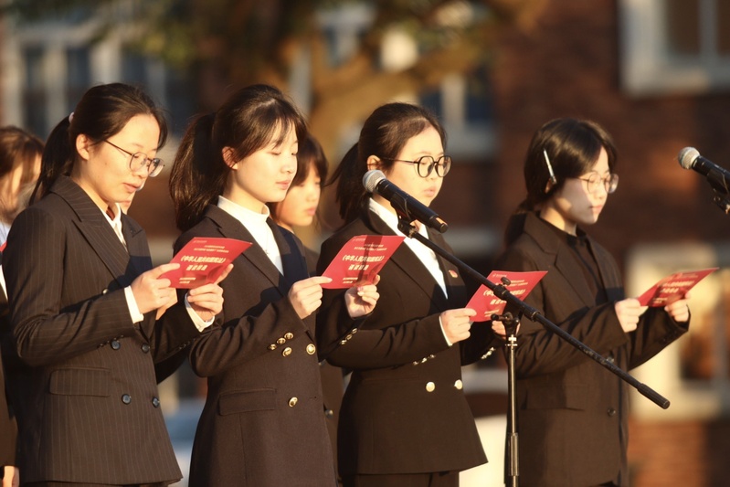 12月4日清晨,学校在回龙校区田径场举行第十五期“站在国旗下”主题教育活动。校党委副书记朱邦相、法治宣传教育办公室及相关职能部门、各二级学院分管学生工作负责人与5000余名师生共同参加。全场师生在法学院学生领诵团的带领下齐声诵读宪法条款,学生代表现场发出“宪法卫士,有你有我”的行动倡议。