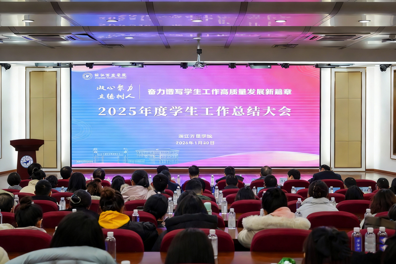 1月30日下午,浙江万里学院学院2025年学生工作总结大会在钱湖校区图书馆报告厅召开。校党委副书记朱邦相出席大会并讲话,党委宣传部、学生工作部、研究生工作部、安全保卫部等部门负责人,各二级学院学生工作负责人及全体辅导员齐聚一堂,总结过往成效,谋划未来发展。