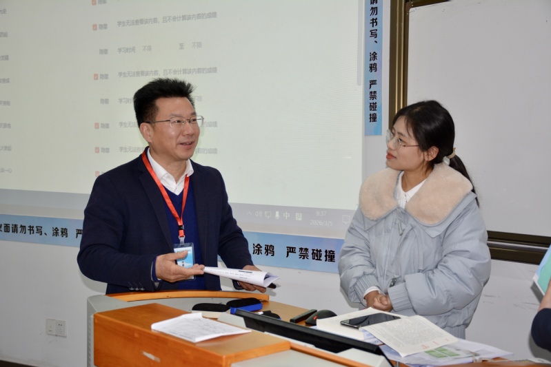 余丹走进回龙校区课堂,聆听王若诗老师主讲的《大学语文》开学第一课。课堂上,王老师详细解读本学期课程评价方式,以明确的专业要求和清晰的课程目标,引导学生认识日常积累与协作实践的重要性,同时运用雨课堂、案例教学等方式,让学生在案例分析中学习、在实践运用中提升,让经典语文课程更具趣味性与实用性。课后,余丹与授课教师就课堂教学管理、学生互动引导等工作交流意见。她对回龙校区新学期教学工作予以肯定,指出校区整体教学秩序井然,任课教师精神饱满、备课充分,教学运行平稳有序。针对当前教学中存在的学生课堂抬头率不高、教师授课投入充分但学生课堂回应偏弱等问题,她建议教务处与学生工作部加强协同联动,多措并举激发学生学习内生动力,提升学生学习主动性与积极性,推动学生在能力培养、思维提升等方面实现多元深入发展,为学校专业认证推进与人才培养布局优化提供有力支撑,持续提升学校育人内涵质量。