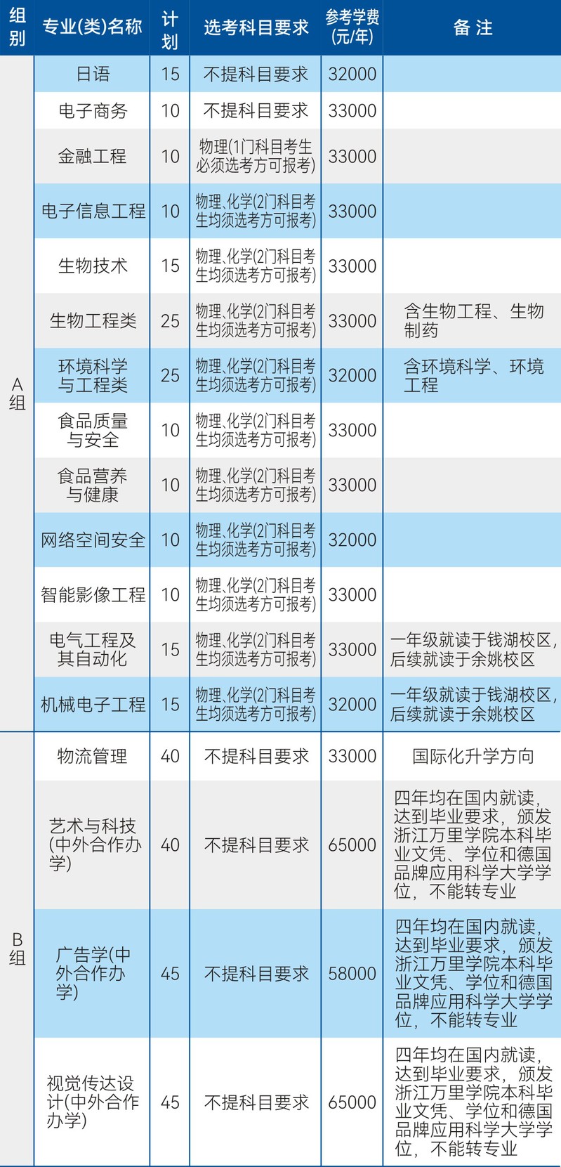 2026年浙江万里学院“三位一体”综合评价招生计划