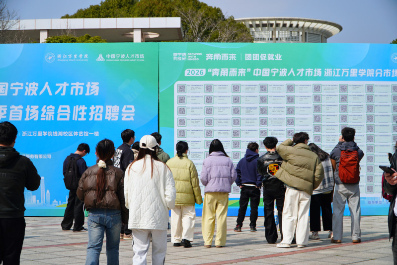 3月12日下午,2026“奔甬而来”中国宁波人才市场浙江万里学院分市场春季首场综合性招聘会在我校钱湖校区体艺中心举办。本次招聘会共吸引仲利国际、顺丰速运、宁波银行、华数等100余家企业参会,岗位涵盖金融、科技、制造、教育等多个行业。