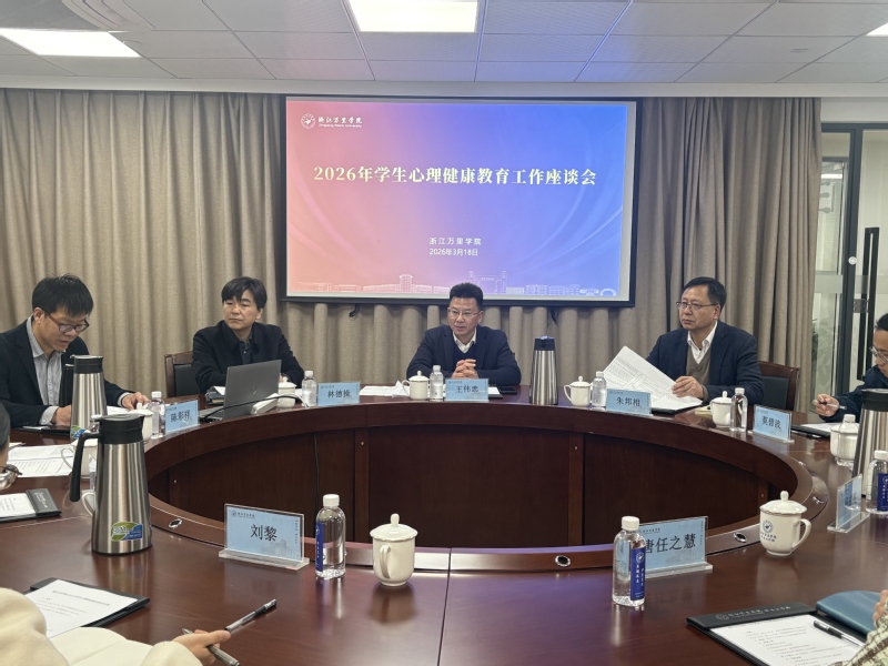 王伟忠充分肯定了我校大学生心理健康教育工作取得的成绩。他强调,心理健康教育是落实“健康中国”战略、推进健康学校建设的核心抓手,是支撑学校高质量发展、落实立德树人根本任务的关键环节,必须将心理育人系统融入学校整体教育体系,凸显其重要地位。立足“健康第一”工作要求,王伟忠提出四点工作意见:一是要提高政治站位,融入大格局凝聚合力。要将心理健康教育深度嵌入学校发展全局,凝聚协同推进合力,夯实健康学校建设根基;要把心理育人融入“大思政”工作体系,以更高标准、更实举措践行立德树人根本任务,促进学生德智体美劳全面发展。二是要把握工作规律,守正创新提质效。要遵循大学生身心成长规律与心理健康教育规律,坚持传承优良经验与创新工作模式相结合,不断提升工作的科学性、针对性与前瞻性,探索贴合我校学情的心理育人新路径。三是要健全工作体系,构建“防-育-爱”一体化格局。要聚焦预防、教育、关爱三大核心环节,打通全链条工作闭环,深化特色品牌培育,全力打造具有万里辨识度的心理育人名片,全面提升工作系统性与影响力。四是要夯实基层基础,建强队伍优机制。要配齐建强专业化心理健康教育队伍,强化校内各部门、各学院协同联动,积极整合家庭、社会优质资源,加快构建家校社协同发力的心理健康教育新格局。
