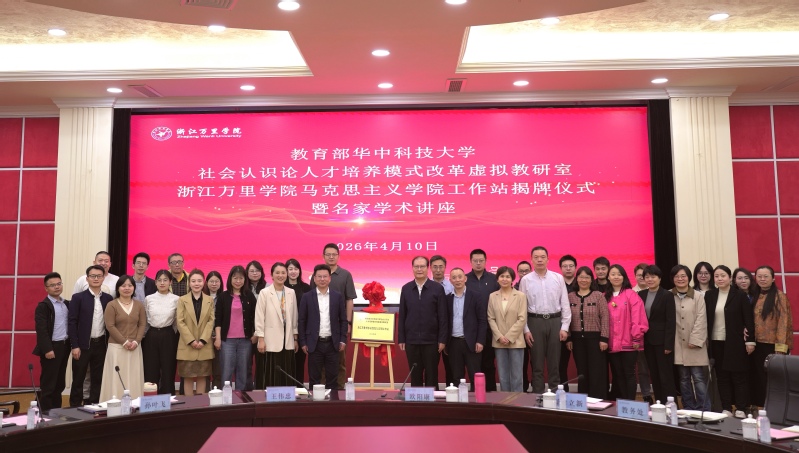 4月10日上午,教育部华中科技大学社会认识论人才培养模式改革虚拟教研室-浙江万里学院马克思主义学院工作站揭牌仪式暨名家学术讲座,在我校行政楼112会议室举行。中国辩证唯物主义研究会社会认识论专业委员会会长、国家“万人计划”教学名师、教育部“长江特岗学者”欧阳康教授,党委书记王伟忠出席,教务处相关负责人、马克思主义学院师生代表共同参会。