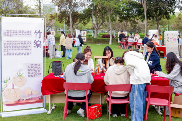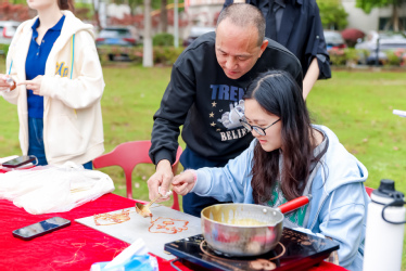 本次共设置14个非遗摊位,创历史新高。香囊、面塑、剪纸、竹编、糖画、青团制作等项目吸引师生沉浸式体验;民乐、戏曲、茶艺等舞台表演同步进行。电子信息工程专业23A2班的路析鸣参与了多个非遗项目体验:“最让我印象深刻的是青团制作,从揉制青团皮、包入馅料到成型蒸熟,每一步都亲手参与,真切感受到传统点心的制作技艺与民俗韵味。”同时,亲手绘制糖画也让她感到十分有趣,在挥洒间体会到非遗技艺的精巧与独特魅力。