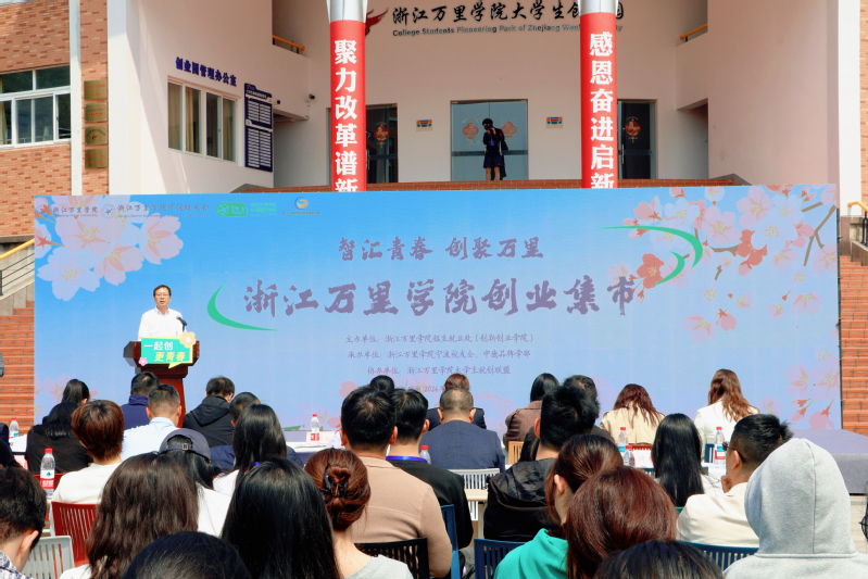 4月24日下午,我校钱湖校区素质拓展中心门口、樱花大道及9号楼展厅人头攒动,创意迸发。以“智汇青春 创聚万里”为主题的创业集市在此火热举行。招生就业处(创新创业学院)、社会合作处相关负责人,二级学院分管领导,返校校友及创新创业爱好者齐聚一堂,共享这场集政策解读、项目路演、经验交流和资源对接于一体的“双创”嘉年华。