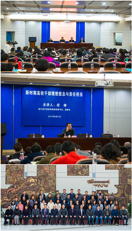 3月21日下午,浙江万里学院2017年度中层干部培训班和中层后备干部培训班(第一期)开班典礼在图书馆报告厅隆重举行。浙江省万里教育集团党委书记、董事长、总裁应雄,集团董事、党委副书记、纪委书记孙斌,校长应敏、党委书记蒋建军与班子成员,以及130余名学员参加了开班典礼。