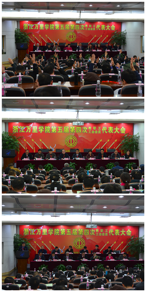 大会听取并审议通过了执行校长应敏所作的题为《聚焦内涵树品牌 迎评促建创一流 奋力开拓应用型示范校创建工作新局面》的工作报告、工会主席陈建荣所作的《适应新常态 服务新发展 为建设高水平应用型示范校作出新贡献》的工会工作报告,审议了《浙江万里学院2015/2016学年财务收支情况及2016/2017学年财务预算报告》、《浙江万里学院工会2016年经费审查工作报告》以及《浙江万里学院第五届第四次“双代会”提案工作报告》等。
